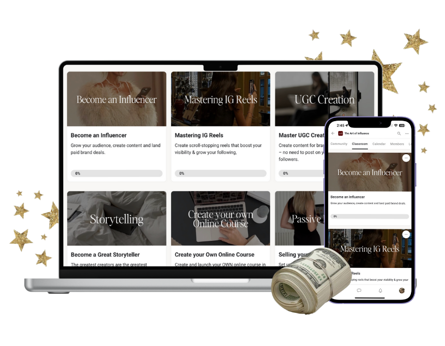 The skills you learn inside make you money over and over again. One brand deal or one digital course sale can pay for your entire enrolment.